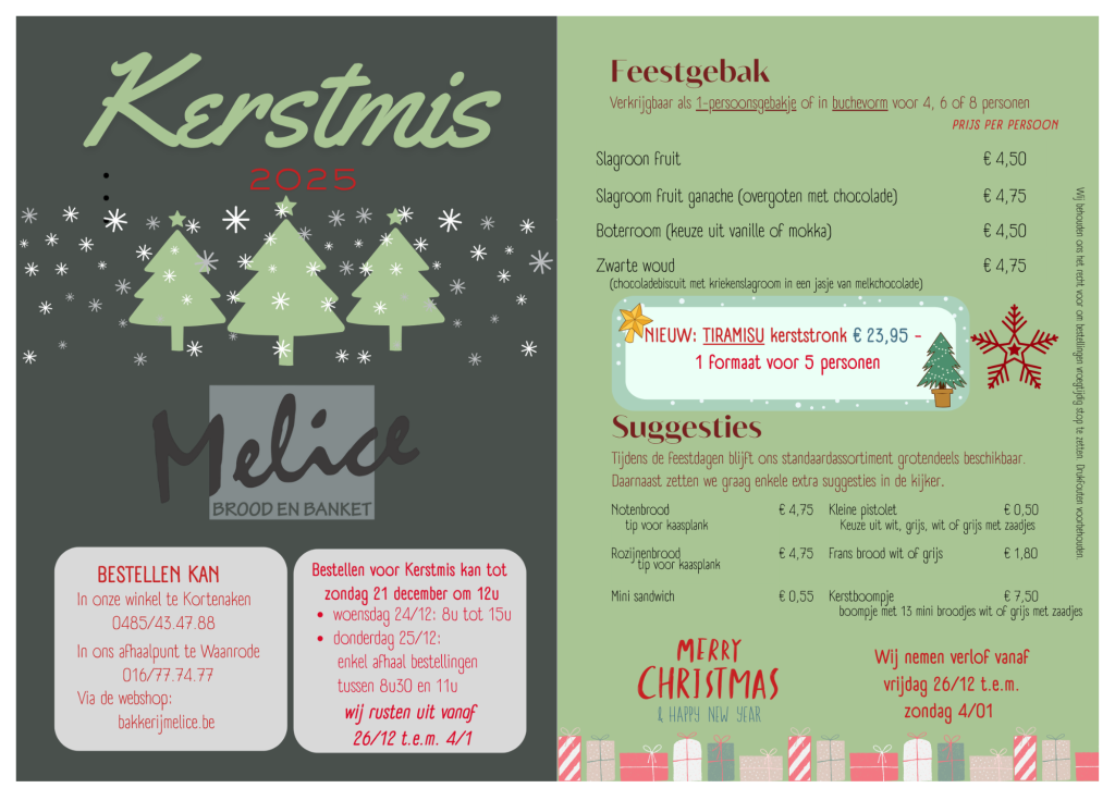 De feestdagen komen eraan, en ook dit jaar kan je bij Bakkerij Melice terecht voor feestgebak en broodspecialiteiten.